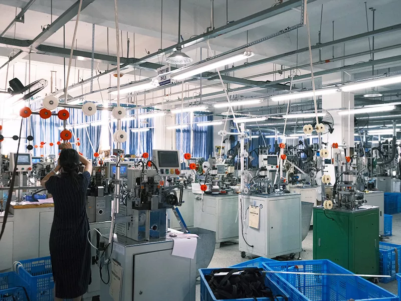 Le système de production de TRC est scientifiquement planifié et divisé en deux domaines principaux : le pré-traitement et le post-traitement. La zone de prétraitement utilise des machines de formage avancées pour garantir la précision et la stabilité duchaînes à glissièreproduit. Combiné à des techniques de couture efficaces et à des techniques précises de scellage par ruban adhésif, cela garantit que chaque fermeture éclair TRC offre des performances constantes et une qualité supérieure. Le post-traitement abrite des dizaines de lignes de production spécialisées couvrant des processus complets, notamment la teinture, le moulage par injection et le polissage. Cela confère non seulement aux produits une fonctionnalité et un attrait esthétique exceptionnels, mais permet également d'obtenir une double amélioration en termes de qualité et d'efficacité. Grâce à une coordination transparente entre les processus front-end et back-end, TRC garantit des normes exceptionnelles et une capacité de production substantielle tout au long du parcours, des matières premières aux produits finis.