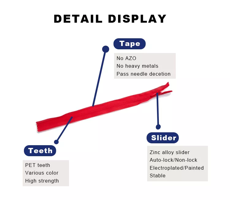 Cette fermeture éclair invisible antidéflagrante (bande de dentelle) possède une résistance au pliage inversé supérieure à 110 N, dépassant de loin les normes des grandes marques internationales. Il garantit un fonctionnement fluide et fiable, même en cas d'utilisation à haute fréquence et de fortes forces de traction.