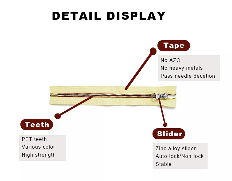 Les fermetures éclair enduites de nylon TRC présentent un traitement de surface unique qui non seulement reproduit l'apparence du vrai métal, mais crée également un effet irisé vibrant, donnant aux vêtements un look saisissant et haut de gamme. Une large gamme d’options de couleurs personnalisées leur permet de s’adapter à n’importe quelle mode ou conception de produit.