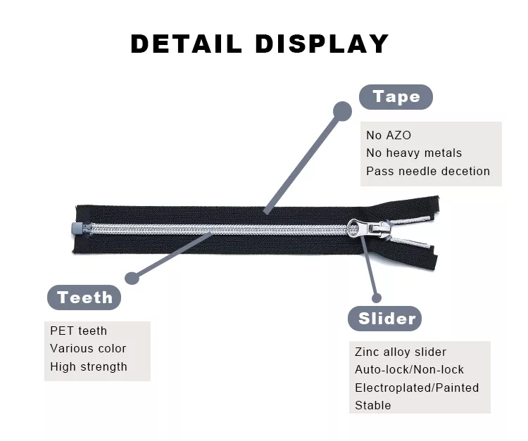 En tant que fabricant chinois renommé de fermetures à glissière, TRC se concentre sur des méthodes de production respectueuses de l'environnement, en utilisant des installations économes en énergie et des processus de réduction des déchets à chaque étape de la fabrication. Les fermetures éclair en nylon recyclé TRC conviennent aux vêtements, aux équipements de plein air, aux bagages et aux accessoires, ce qui peut offrir des solutions pratiques aux marques qui valorisent à la fois le style et la durabilité.